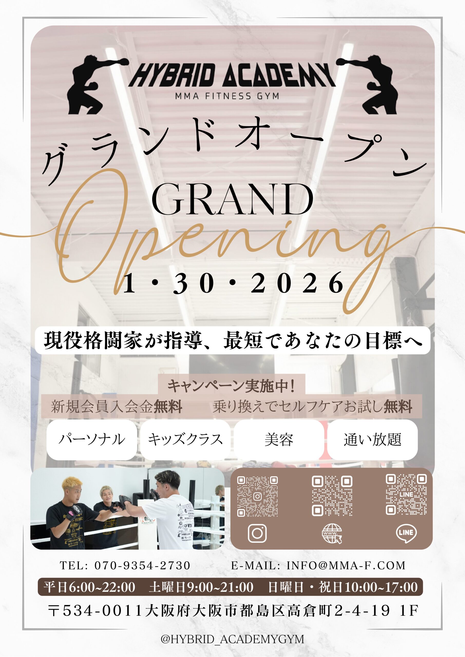 HYBRID ACADEMYは、現役の総合格闘家からボクシングやキックボクシング、空手、ボクササイズの指導が受けられる希少なフィットネスジムです。
