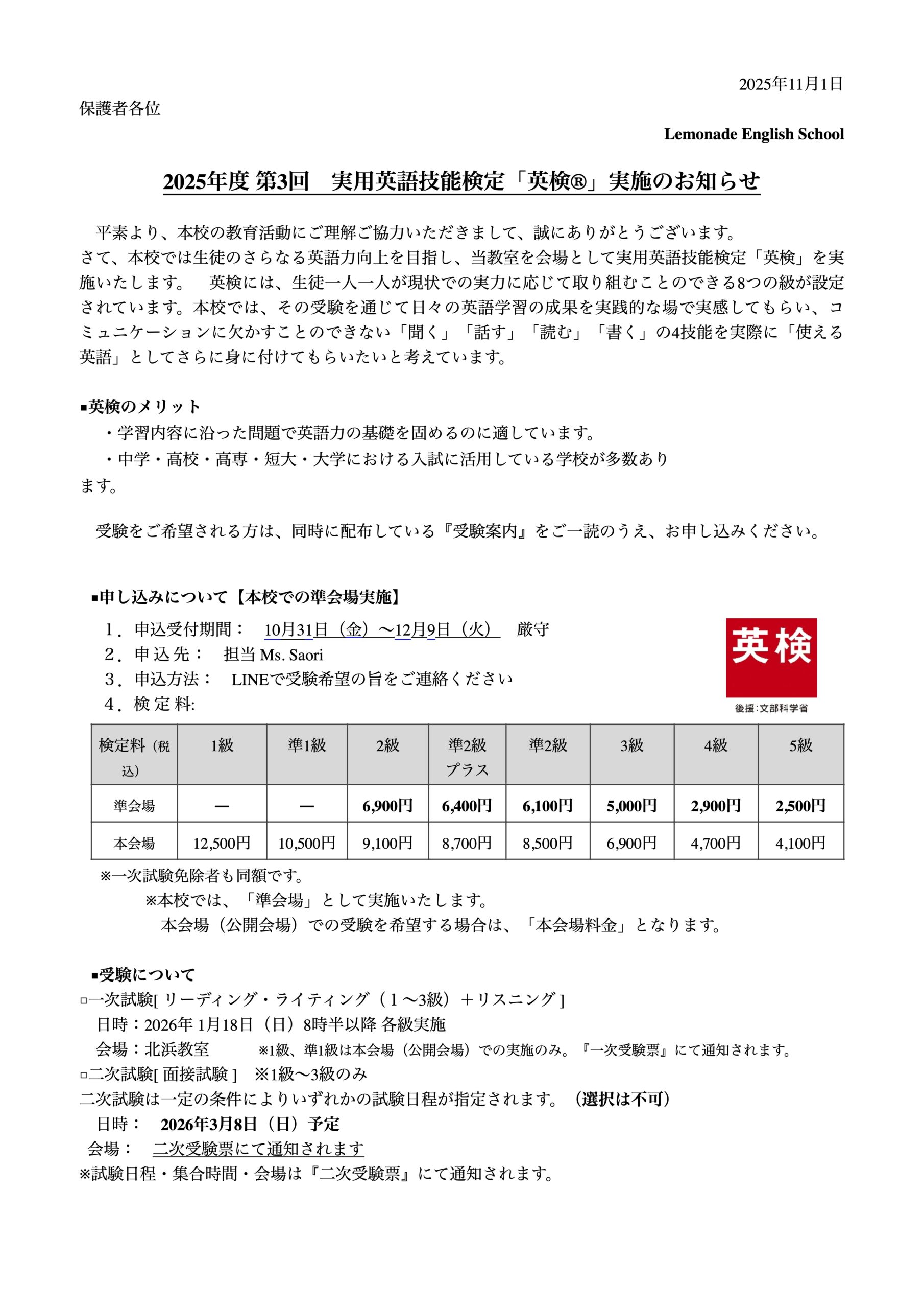 受験希望の方はスクールLINEで