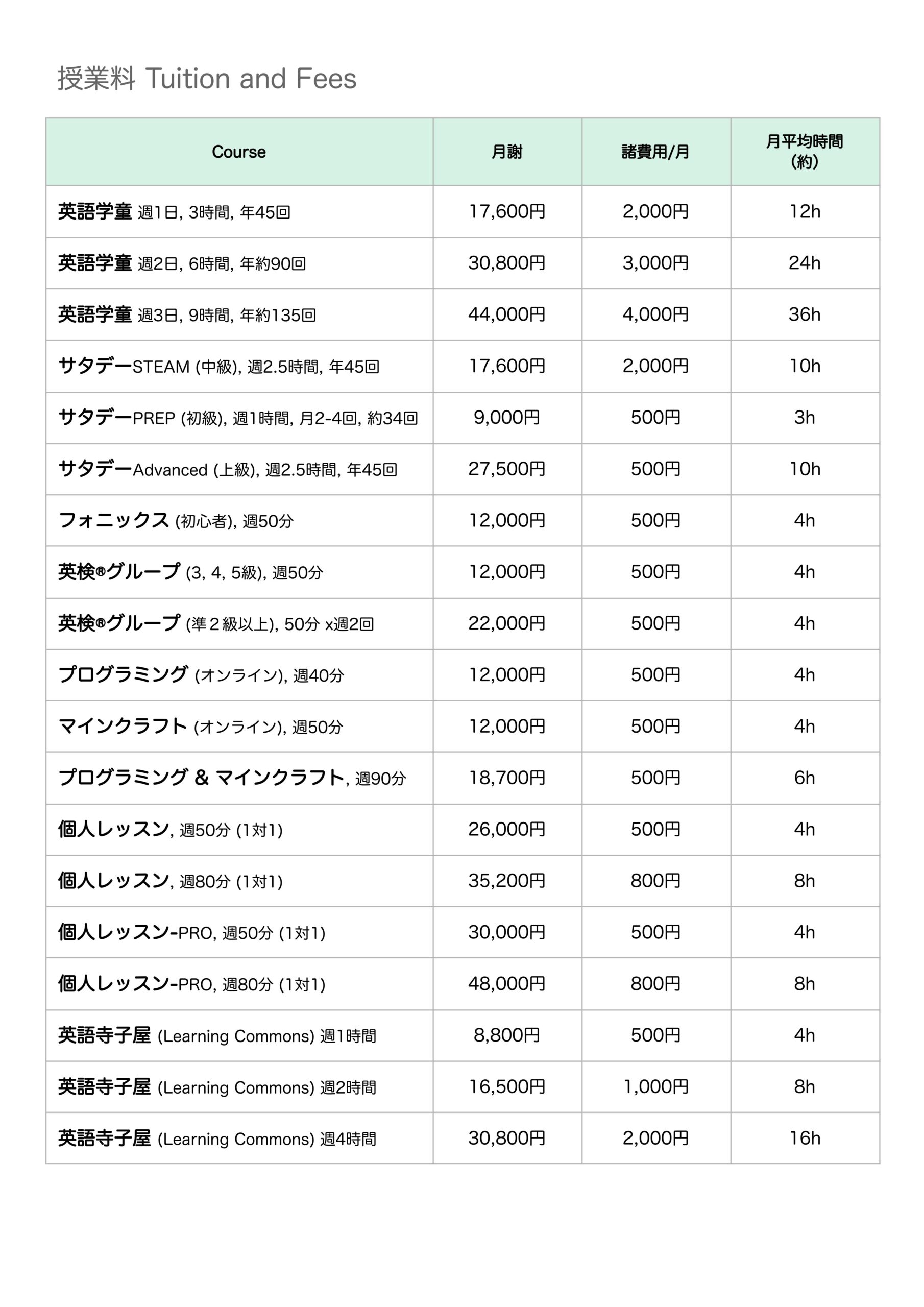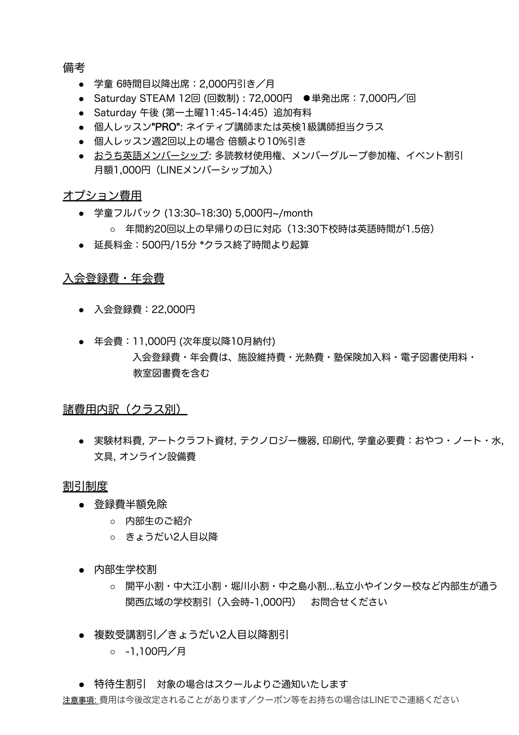 TUITION & FEESメンバー特典